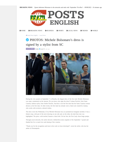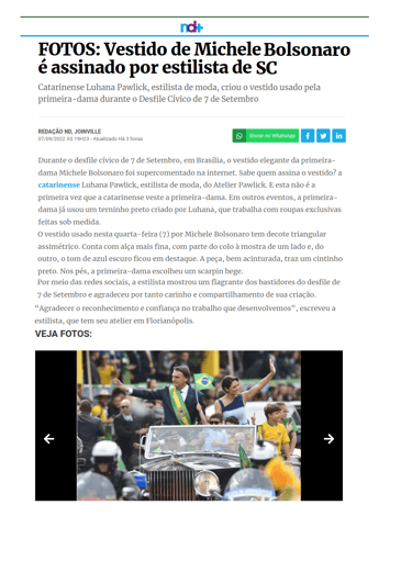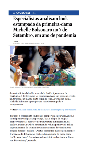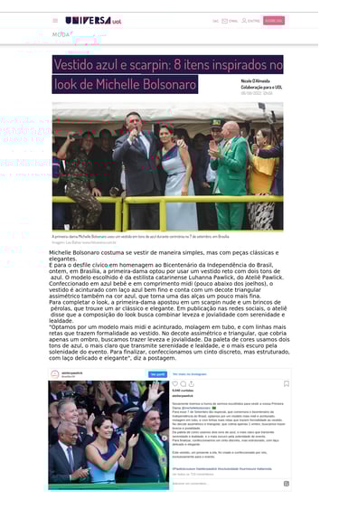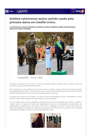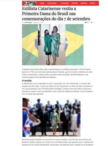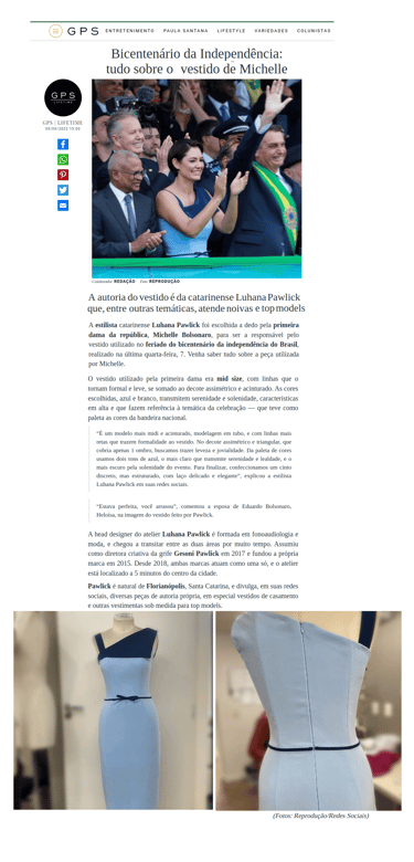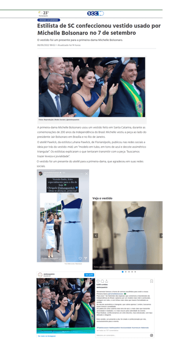 A tradicional moulage Pawlick foi a mesma já utilizada em outras vestimentas dos eventos oficiais figurados pela, na época Primeira-Dama do Brasil, Michelle Bolsonaro.