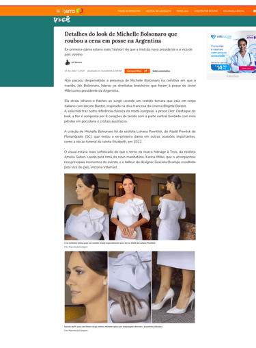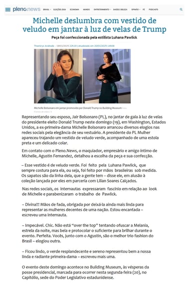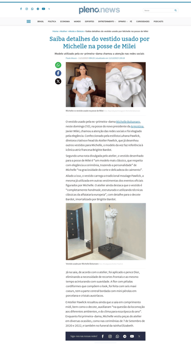 Para o evento da posse do novo presidente da Argentina, Javier Milei, nossa Diretora Criativa e Head, Luhana Pawlick, criou para Michelle um modelo mais clássico, que respeita com elegância a cerimônia, trazendo a personalidade da cliente na graciosidade do corte e delicadeza do caimento.