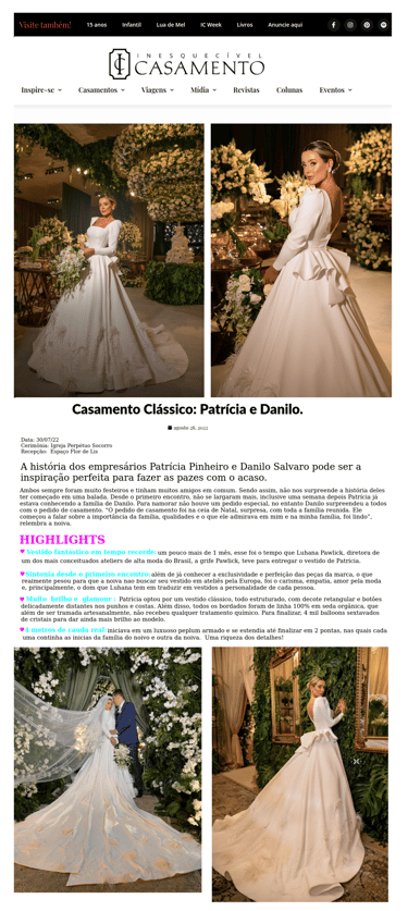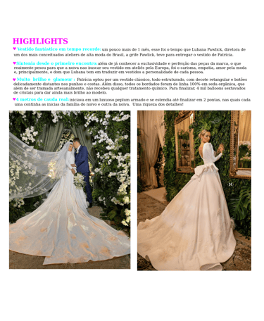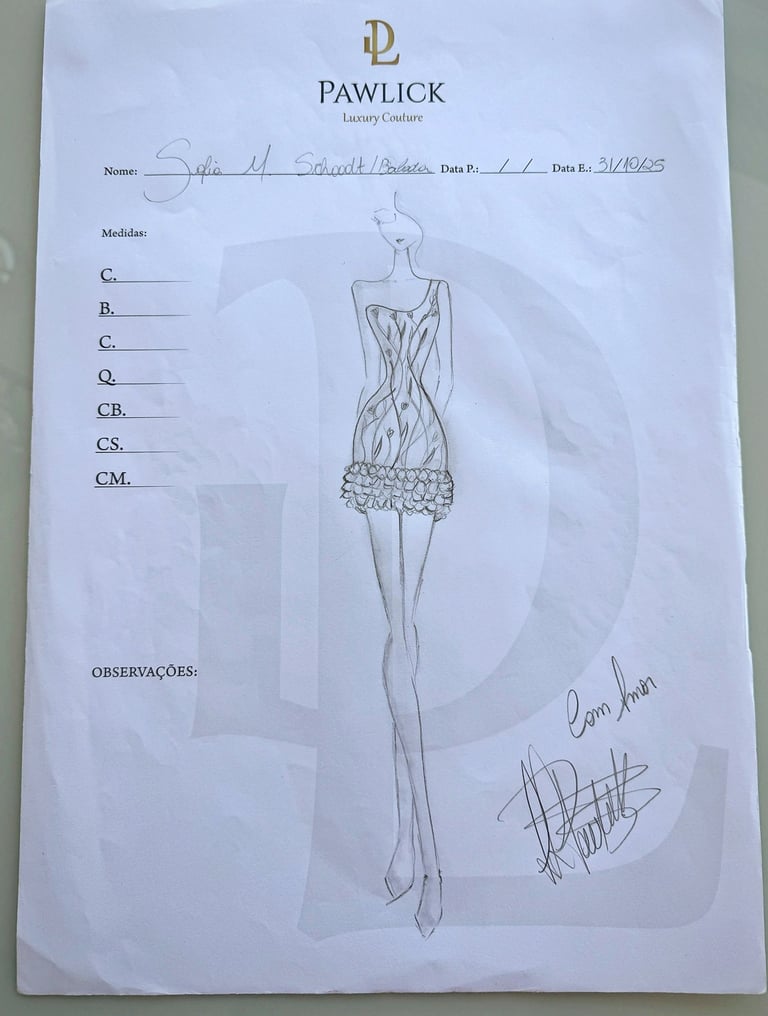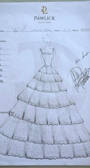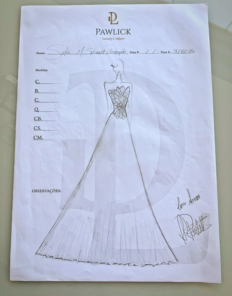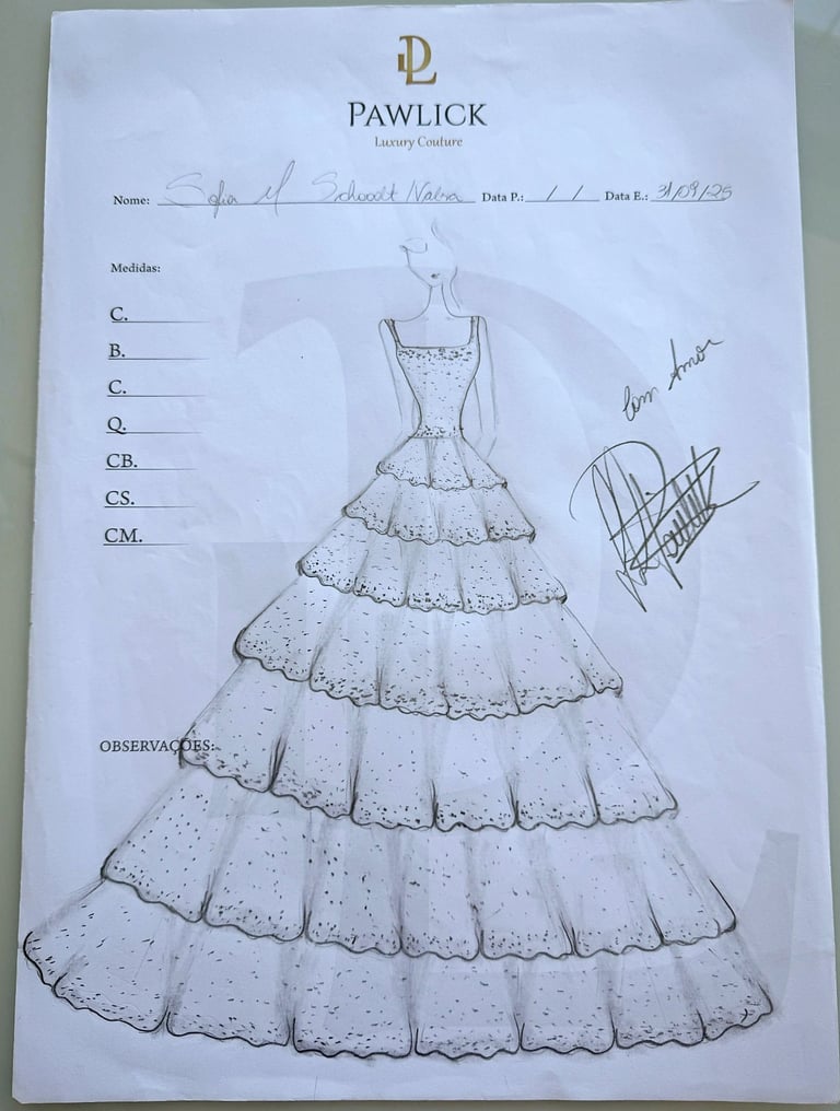 Para este momento singular, a Diretora Criativa e Head da marca, Luhana Pawlick, criou três vestidos exclusivos, cada um revelando uma faceta da personalidade e do brilho natural de Sofia — traduzindo com maestria a essência romântica e atemporal da Alta-Costura Pawlick.