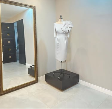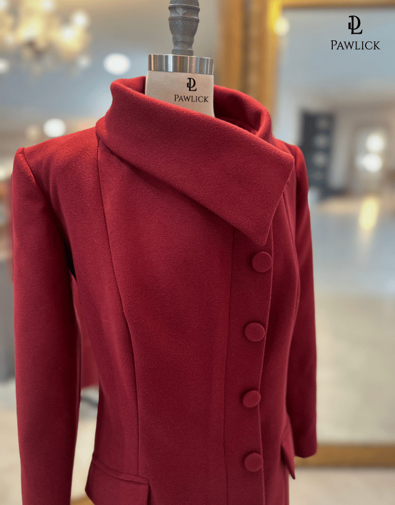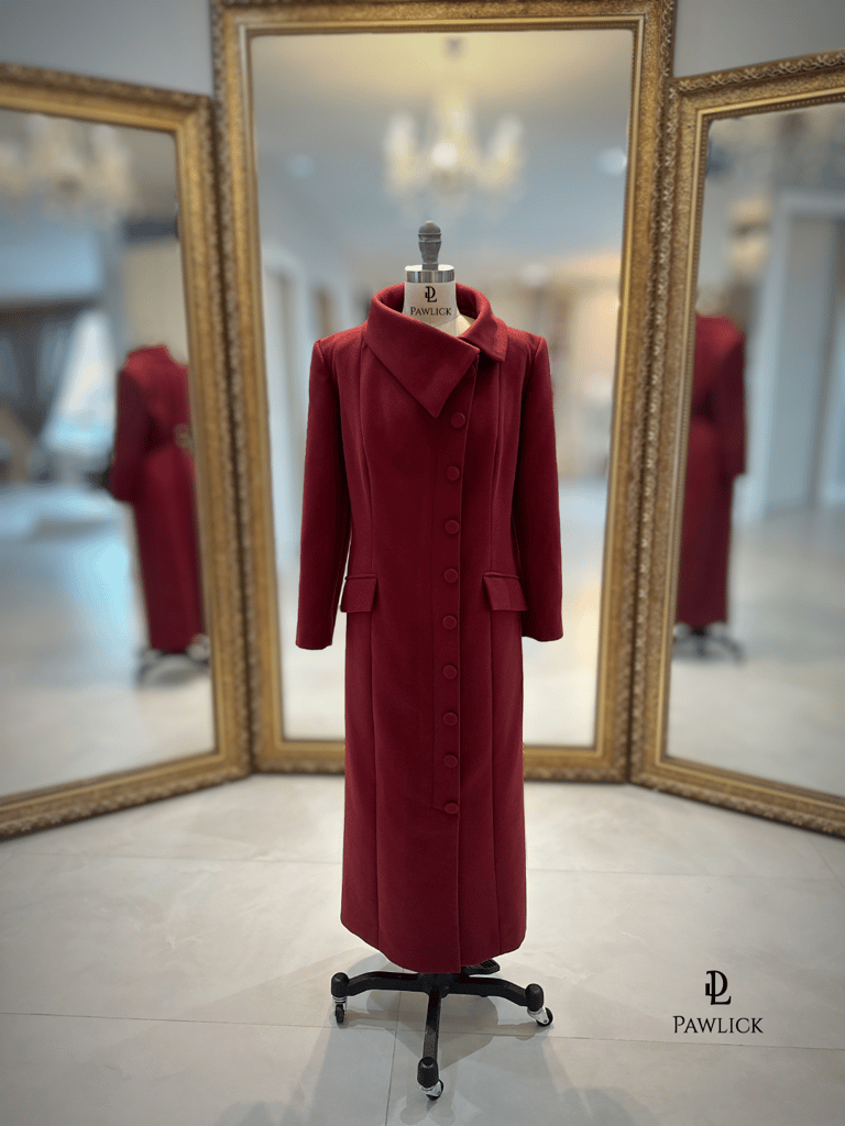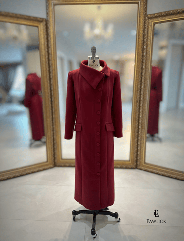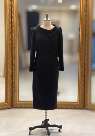 Já sabendo do frio Londrino, optamos por um vestido midi em lã italiana, estruturado, utilizando técnicas clássicas da alfaiataria europeia e completamente handmade, como todos os modelos Pawlick.